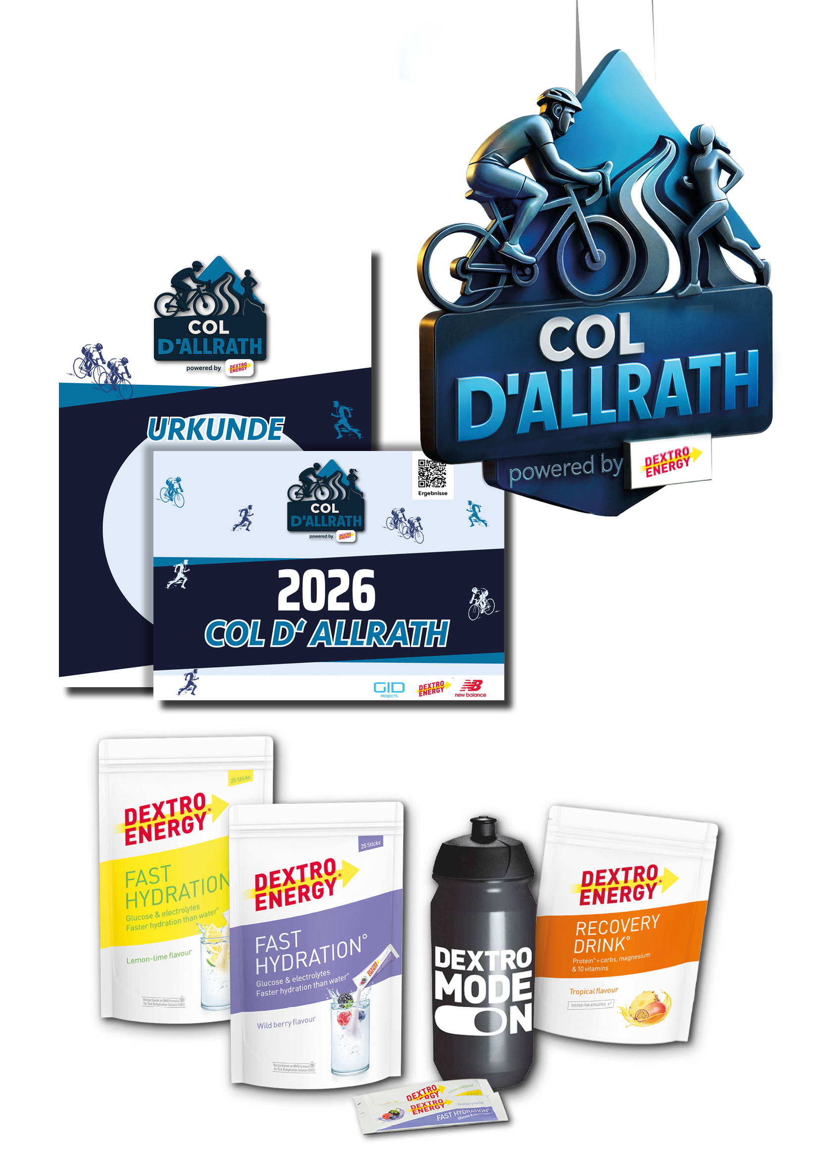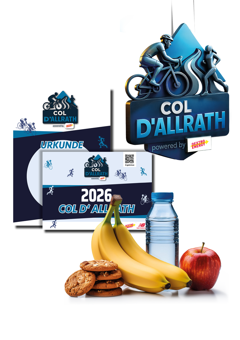 Buche dir das offizielle "Col d'Allrath" Radtrikot sowie das Laufshirt bei deiner Anmeldung mit hinzu. Zusätzlich gibt es ein cooles Baumwollshirt.
